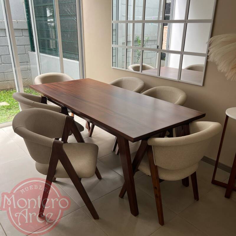 Personalización sin Límites: Los juegos de comedor tapizados son muy versatiles para hacer cambios, puedes elegir entre una amplia gama de colores de tapizado, tonalidades y tipos de madera, que incluyen cedro, cenízaro, guanacaste y teca, para crear un conjunto de comedor que refleje tu gusto personal.